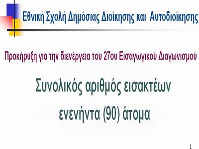 Η Κεντρική Επιτροπή Εξετάσεων (Κ.Ε.Ε.) Προκηρύσσει την διενέργεια του 27ου Εισαγωγικού Διαγωνισμού για την Εθνική Σχολή Δημόσιας Διοίκησης & Αυτοδιοίκησης (ΕΣΔΔΑ).